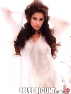 Amazingly, Sofia posted this near naked snap of herself on her social media. Sofia’s age in the picture? 52! Now that is a one heck of a good looking nude celebrity body at any age, let alone 52! Preferring to tease than fully strip off, Sofia nevertheless went and left us hard and breathless by posing with no bra while wearing a sheer dress for a photoshoot, giving us a look at those big boobs and on display nipples. Often posting selfies in tiny bikinis, Sofia has a body we can all jerk ourselves stupid over. You can also see how Sofia fares in our Celebrity Sexiest Legs Gallery